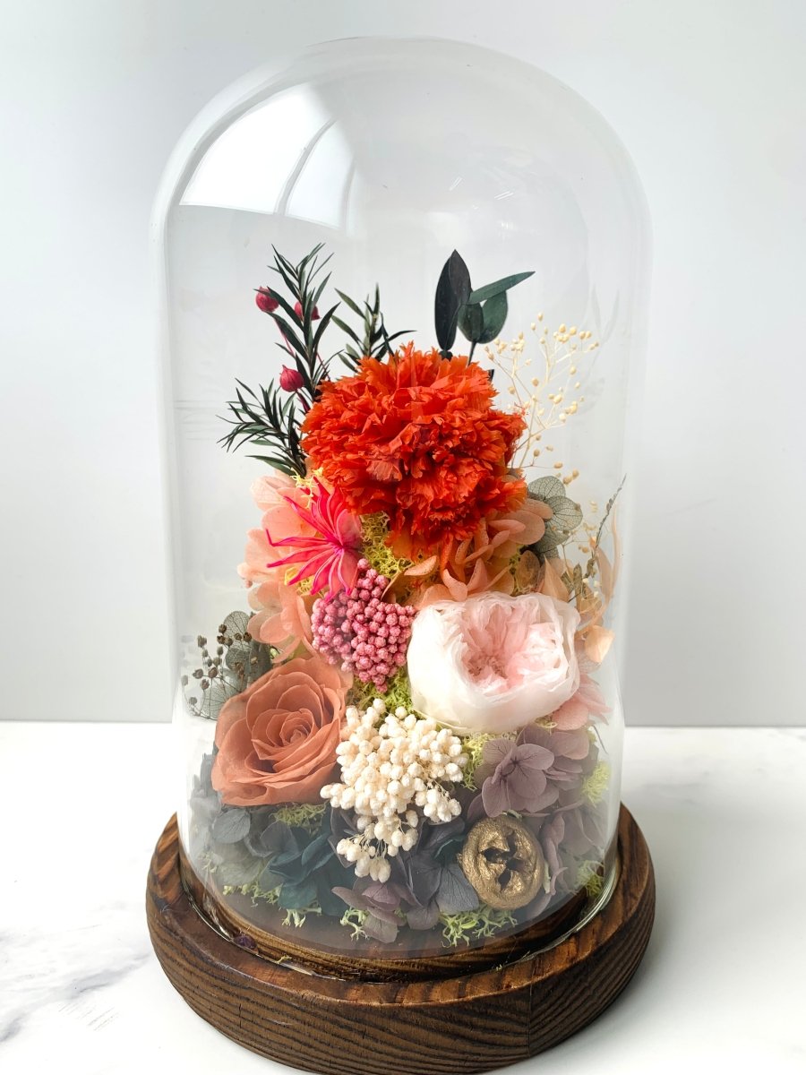 Immerse yourself in the artistry of assembling these miniature gardens, where every petal and leaf is meticulously chosen to retain its natural allure indefinitely. The Preserved Flower Dome stands as a poignant symbol of nature's enduring grace, encased delicately within glass confines.