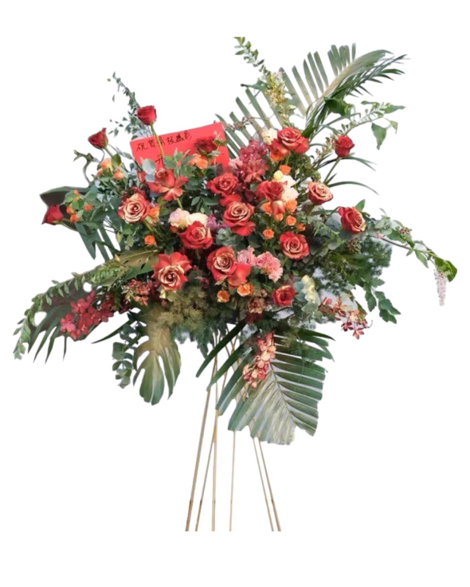 2. Ruby Radiance Spectacle Flower Stand - Featuring a stunning combination of red and white flowers, this flower stand symbolises love, respect, and purity. It's a beautiful way to express your condolences and support during difficult times.